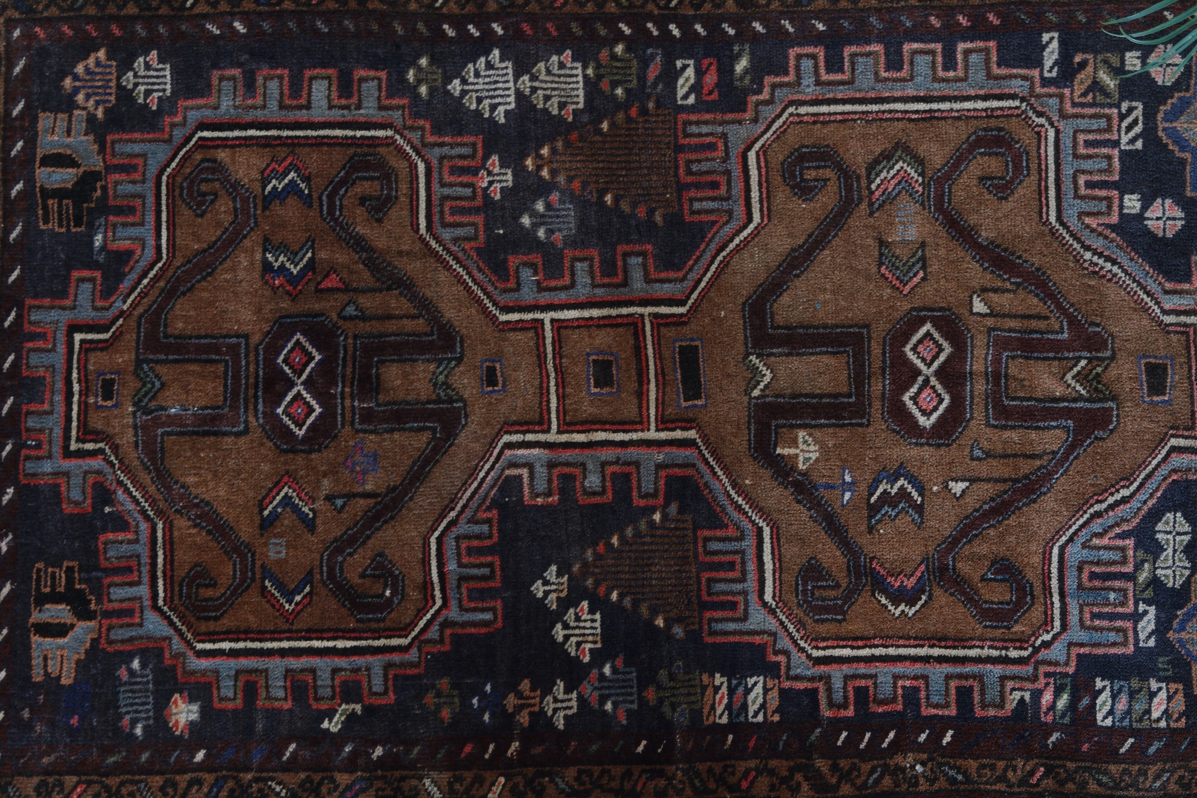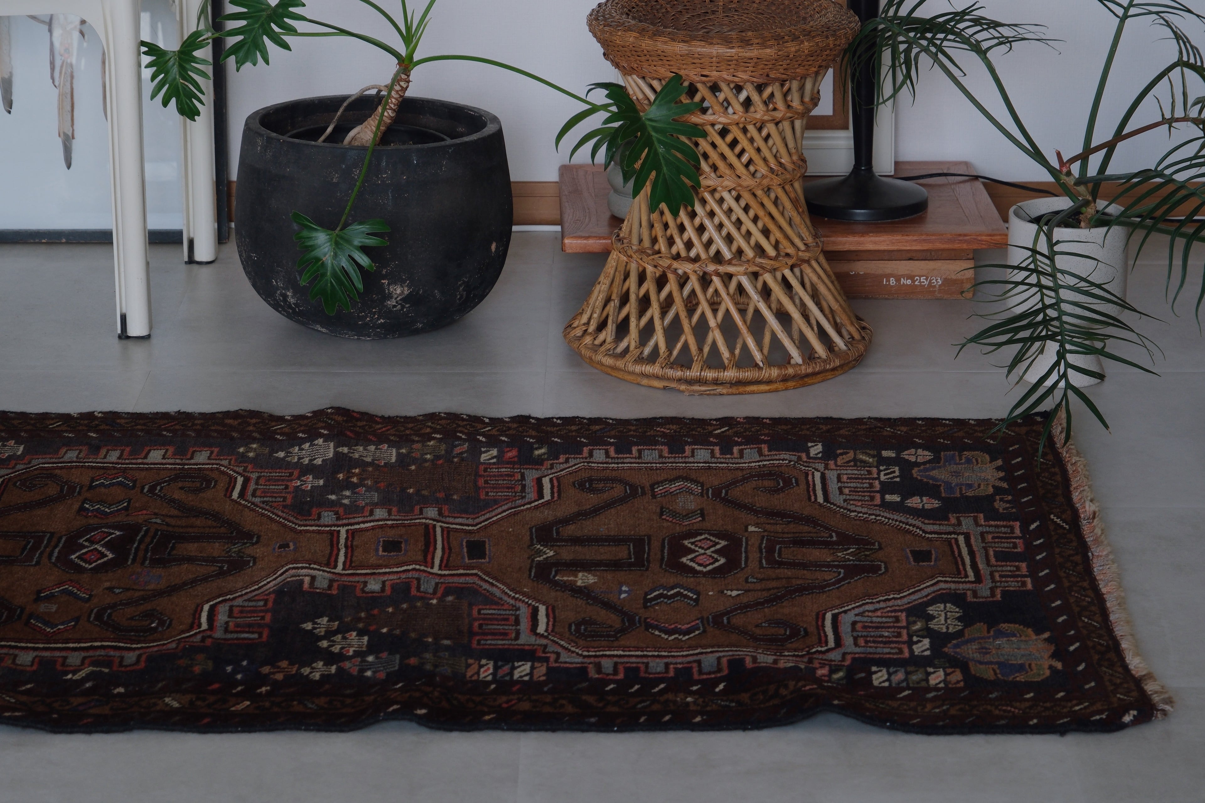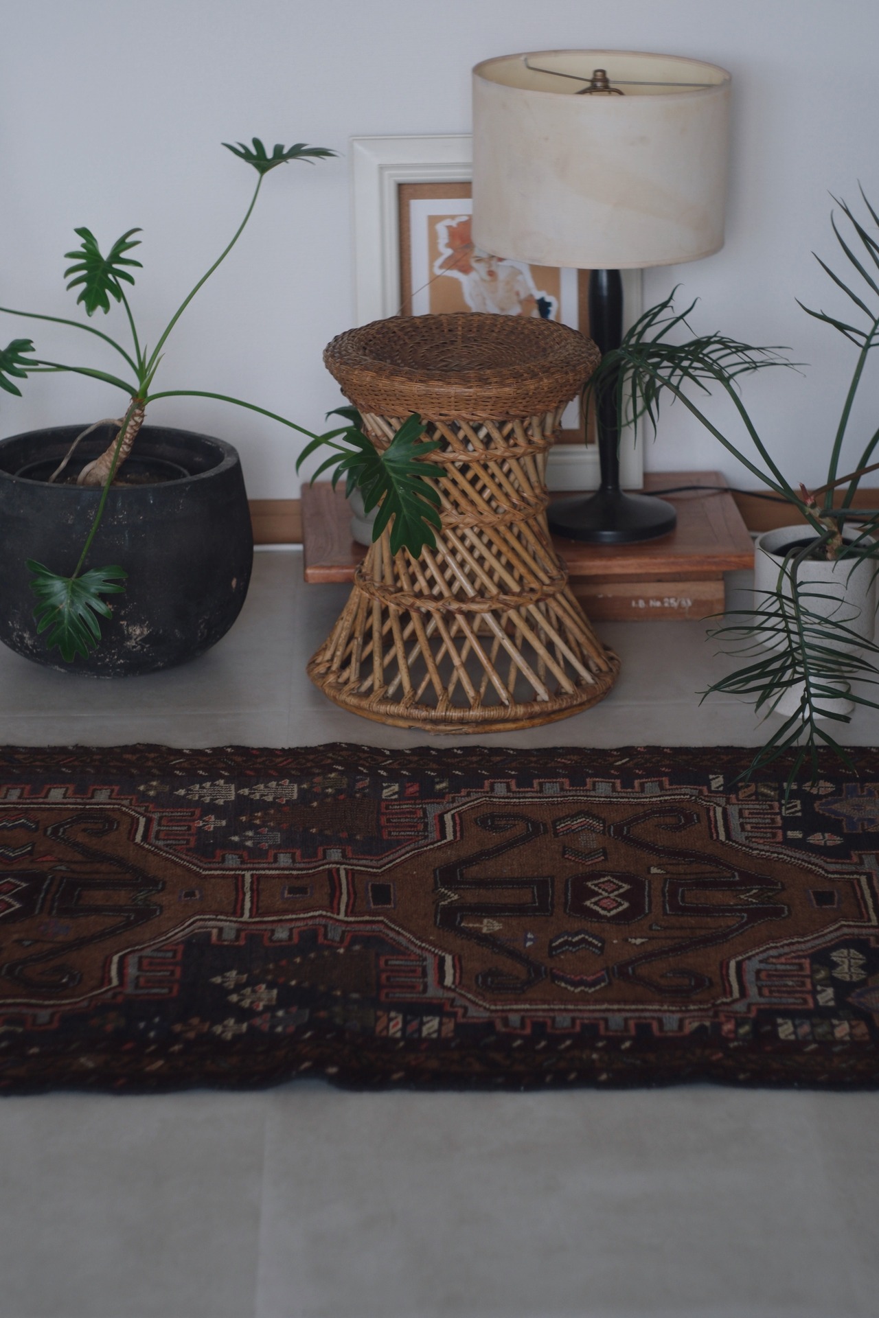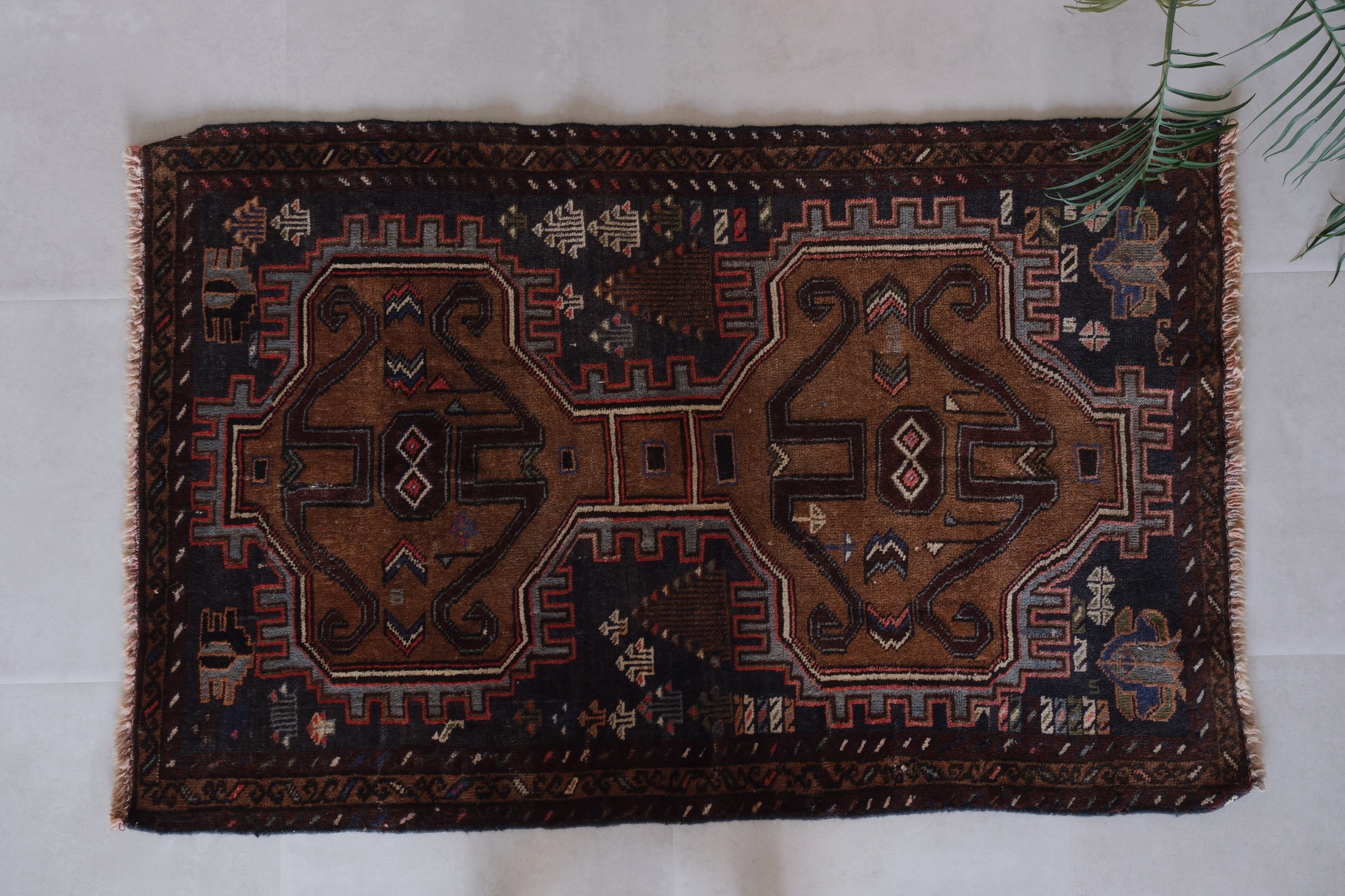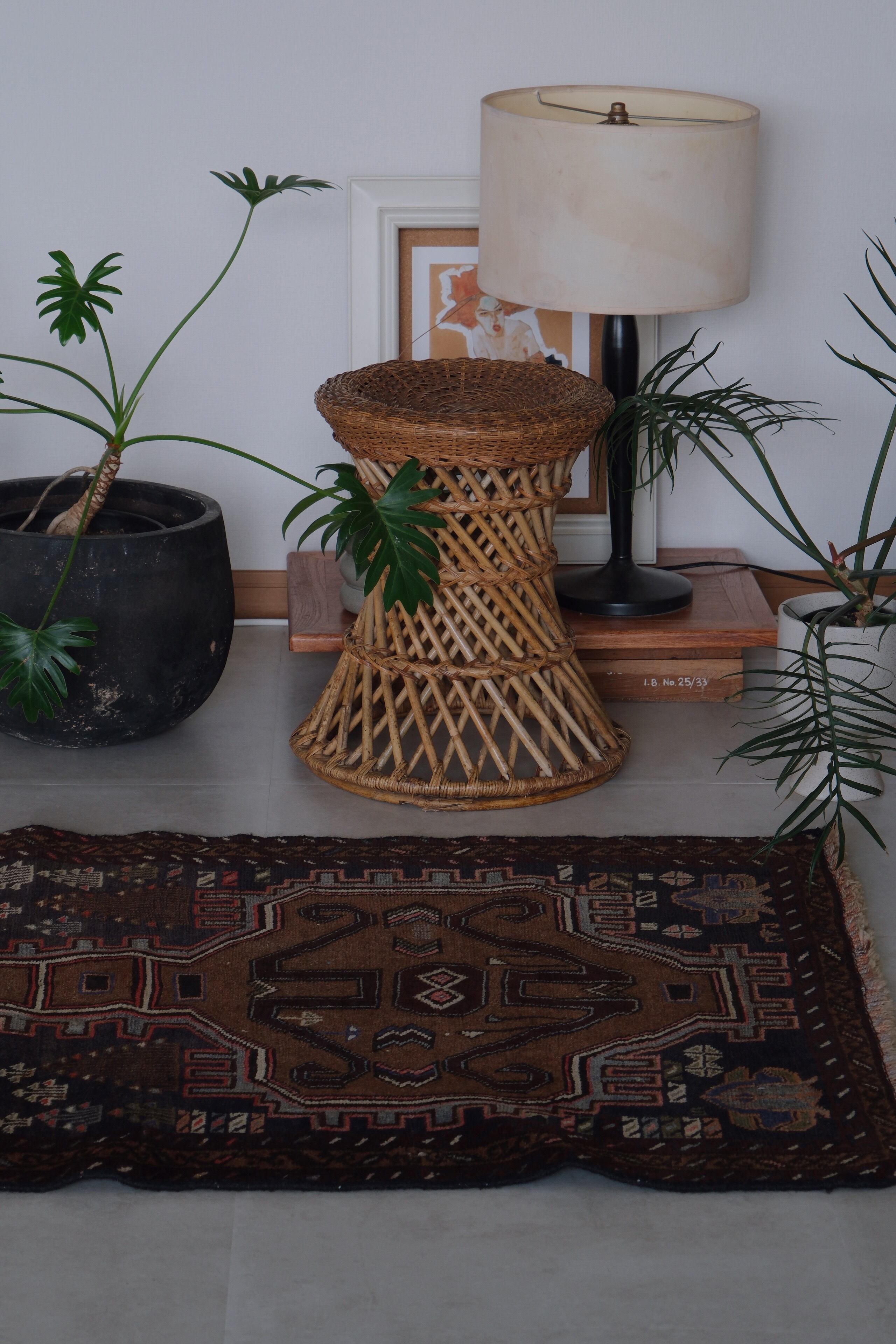 ブラウンとネイビーを基調としたとてもシックな一枚。落ち着いた配色の中にときおり入る水色などの明るいカラーが柄を際立ててくれています。短すぎず長すぎないパイルがぎゅっと詰まった中厚の踏み心地を感じる素材完です。これからの季節にもぴったりのおすすめのアフガンラグです。