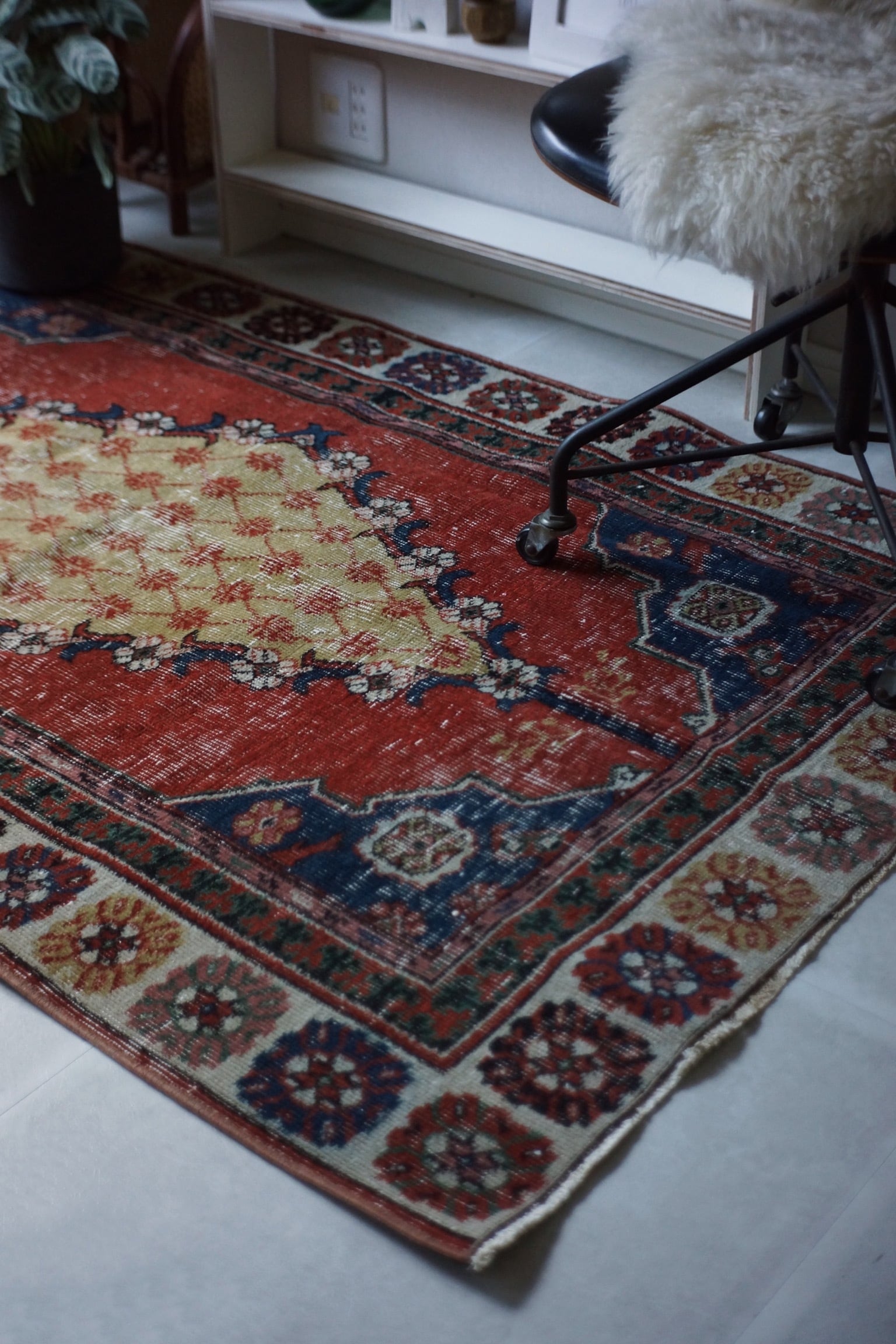 色褪せが素敵なミディアムサイズのトルコラグ。