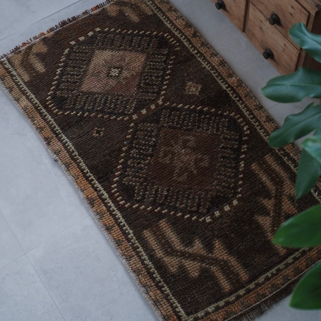 ブラウンと落ち着いたオレンジのスモールラグ。