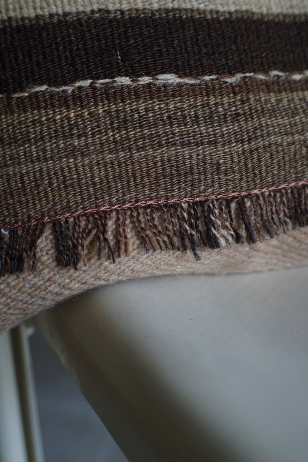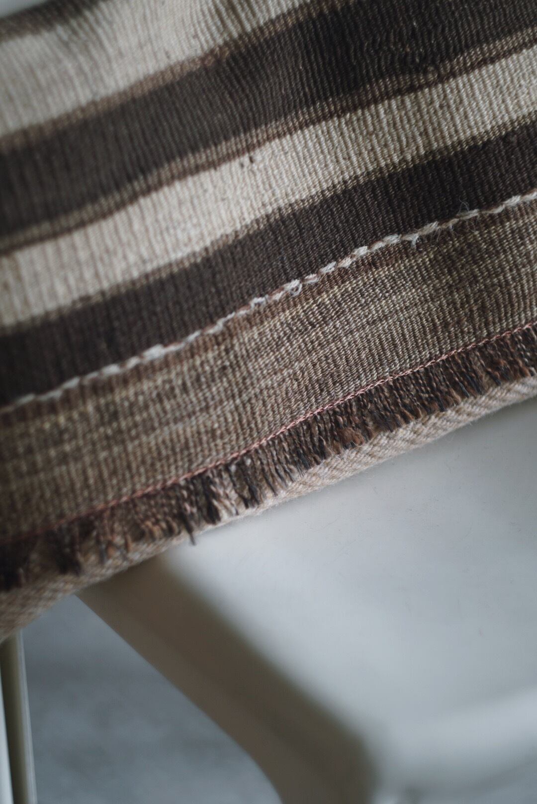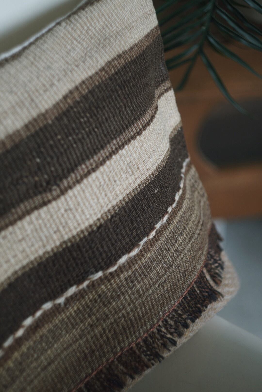生成りと茶の王道キリムのラグクッション。
